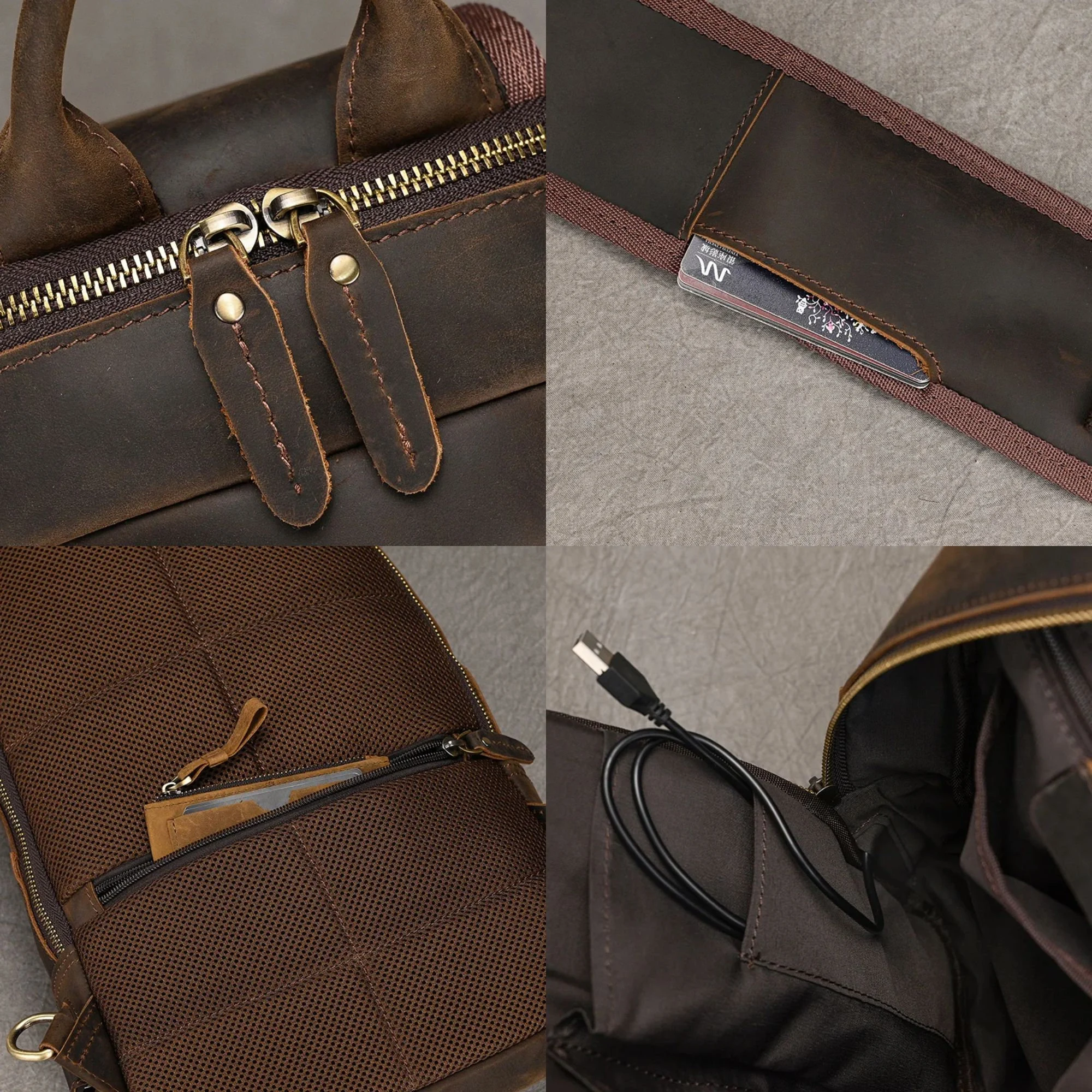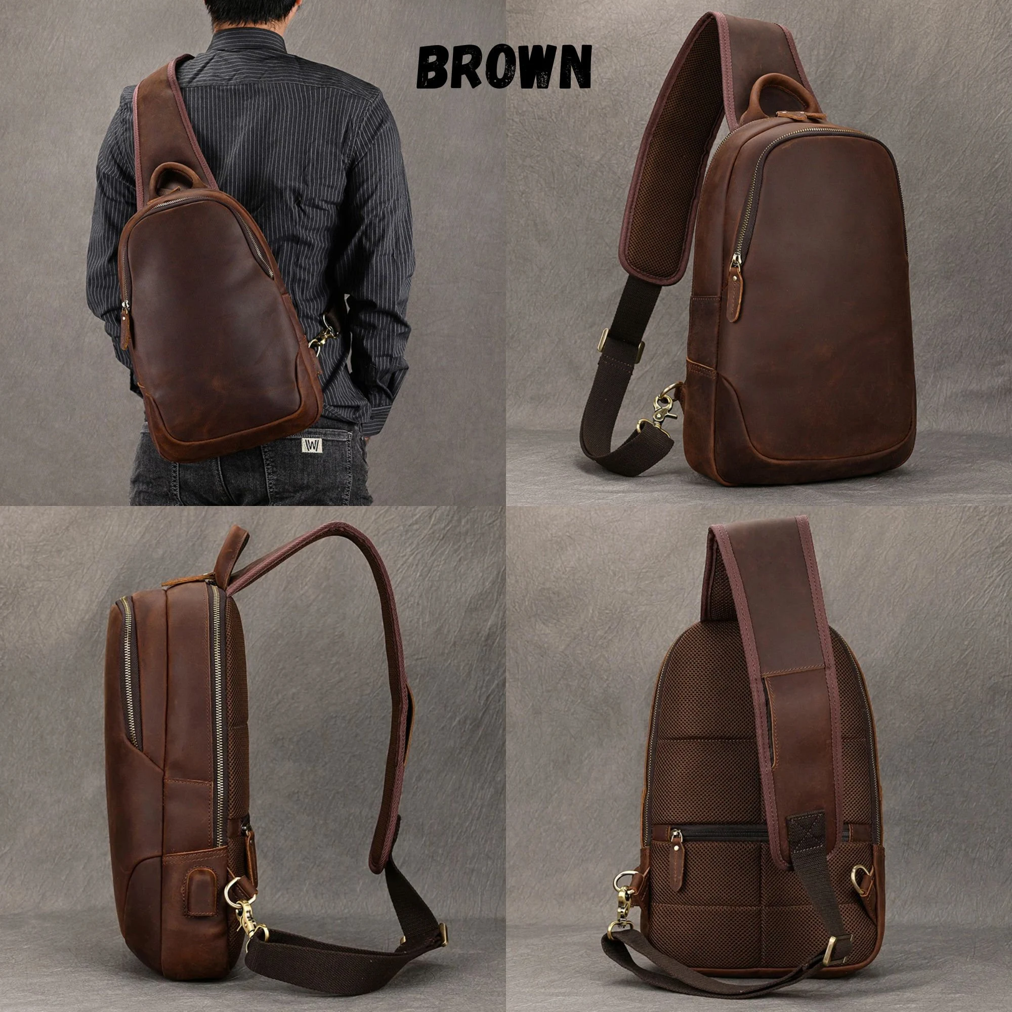 2025 New Men’s USB Charging Large Genuine Leather Retro Leisure Travel Sports Cycling Chest Bag Shoulder Messenger Bag Daily Bag