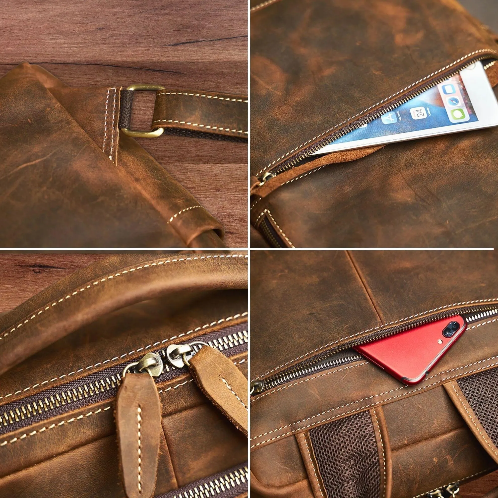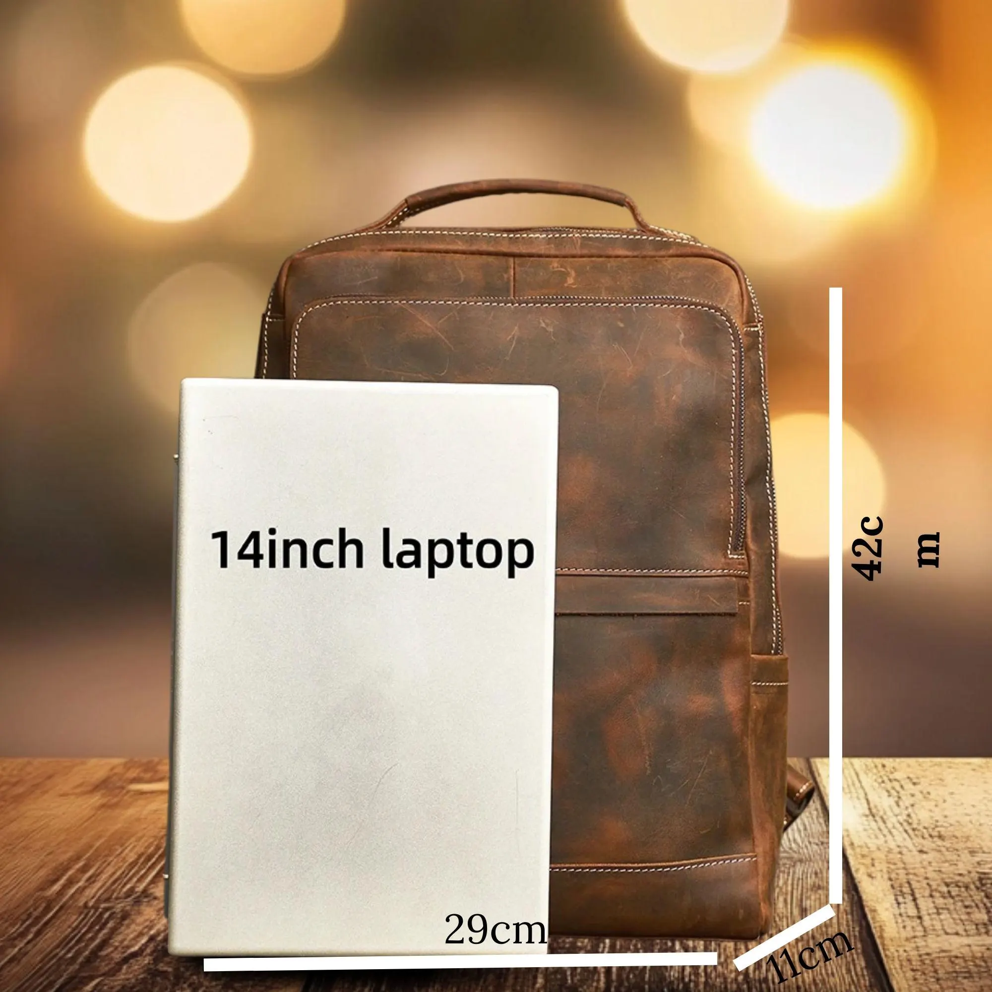 Casual Genuine Leather Men’s Backpack Camping School Backpack Travel Bag Office Backpack Laptop Bag For 17 Inch Laptop