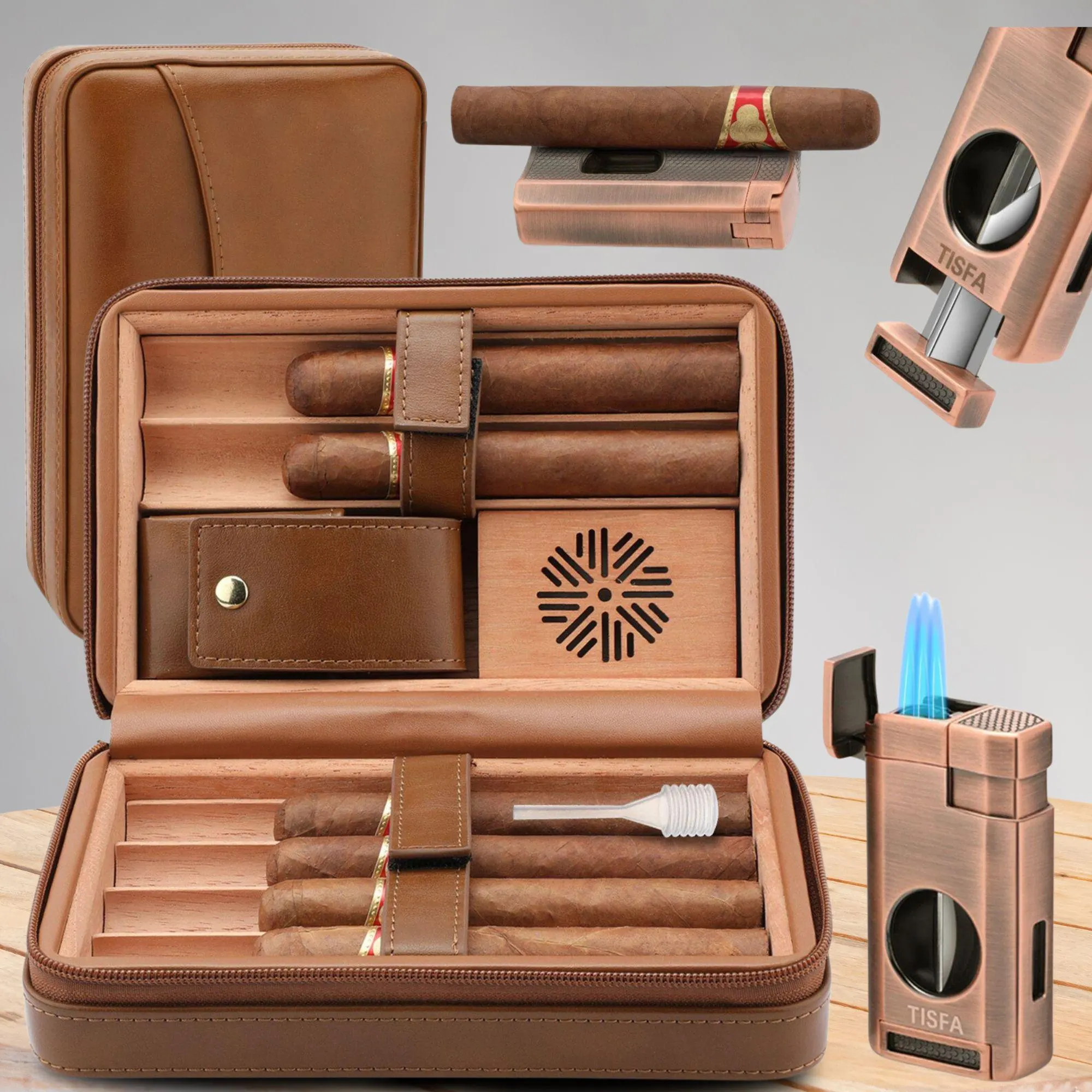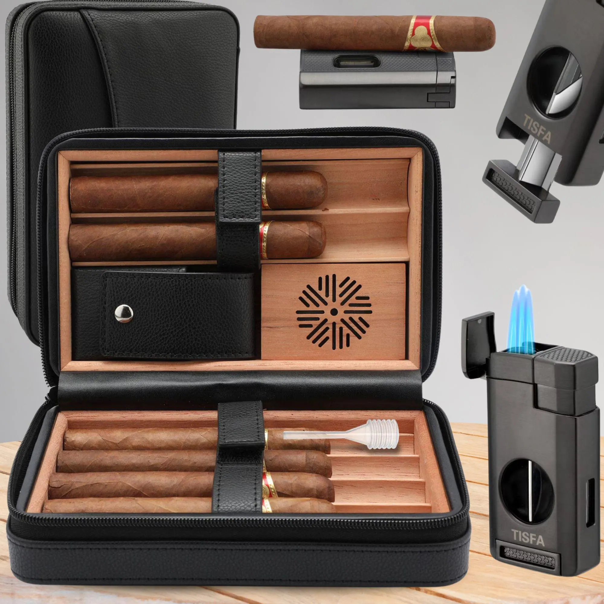 Cigar Box Set Six Pack Convenient Cigar Box Windproof Lighter Set