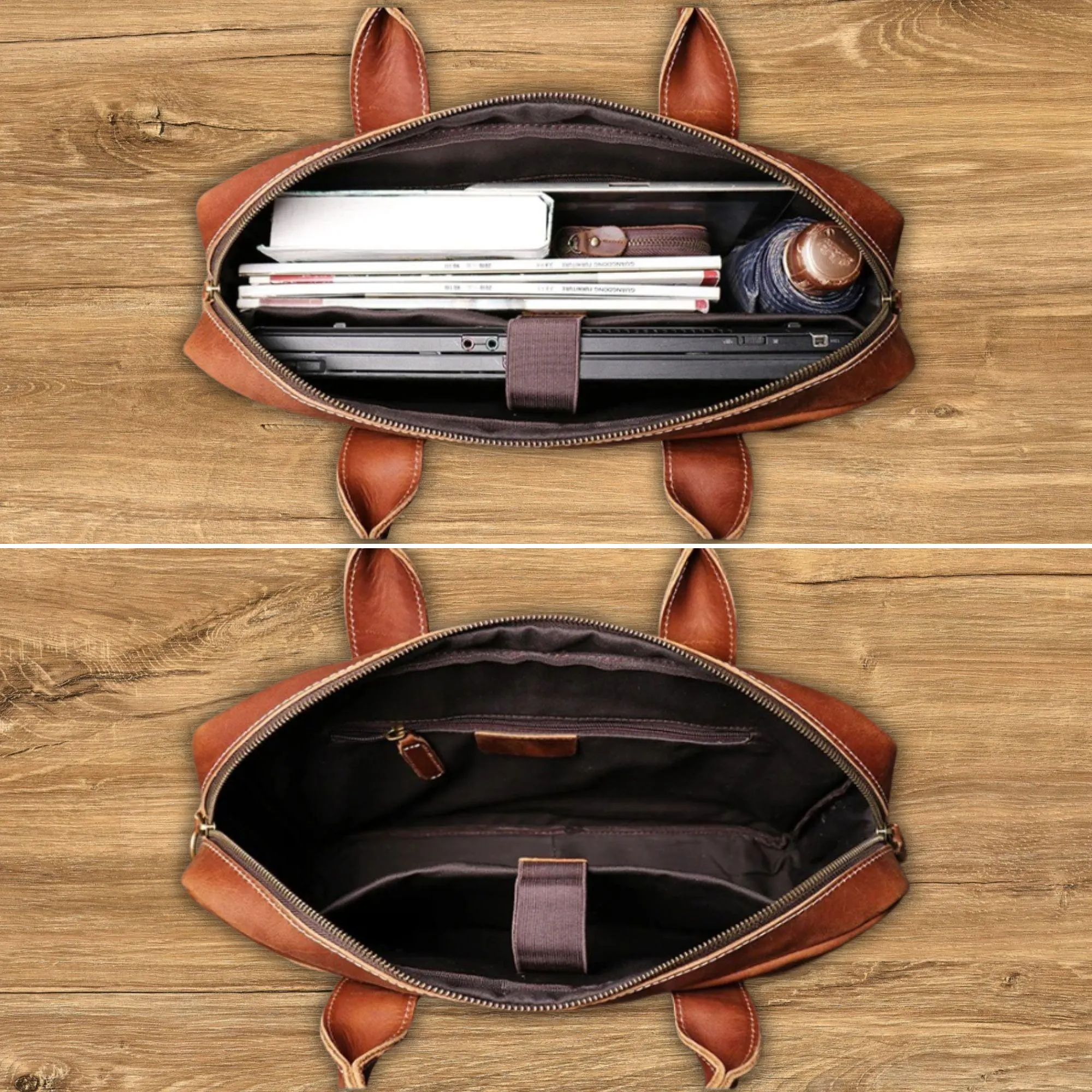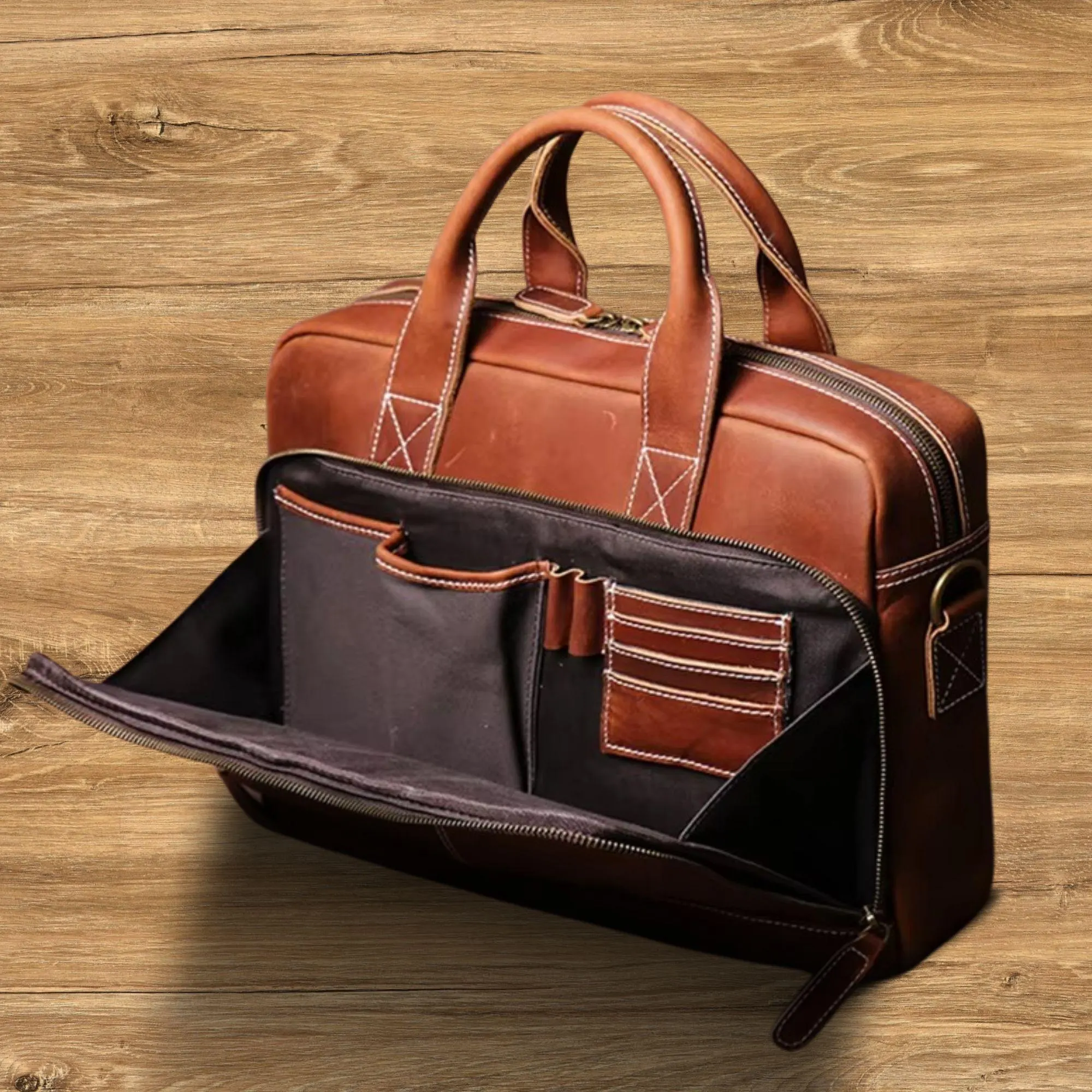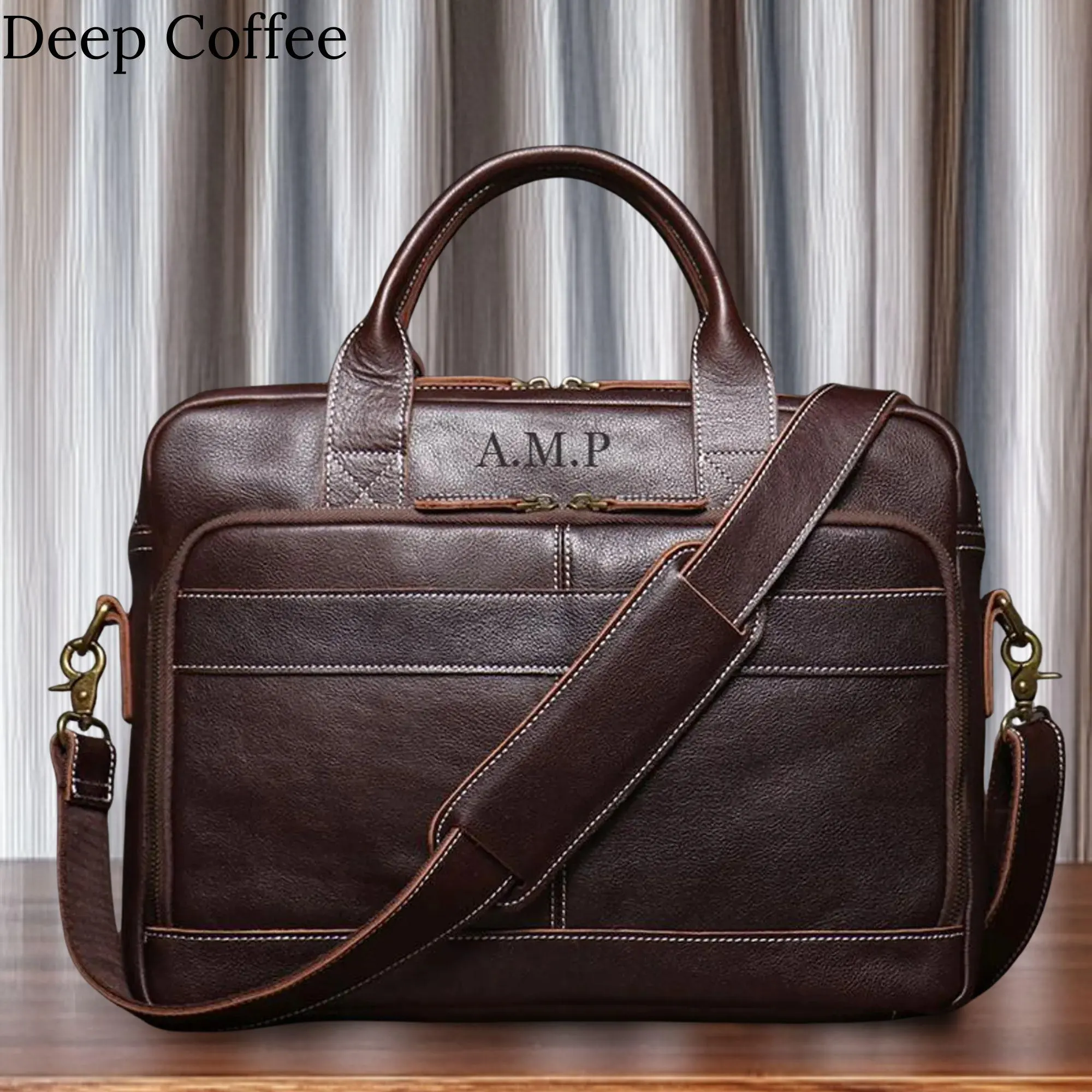 + Free ShippingCrafted from premium top cowhide leather, this GURO executive briefcase offers a perfect blend of luxury and professionalism. Designed for modern businessmen, it features a spacious interior that comfortably fits a 16” laptop, documents, and daily essentials. With its vintage finish, durable stitching, and versatile crossbody/shoulder carry options, this high-quality handbag is ideal for office, business meetings, and travel. Elegant, functional, and built to last.