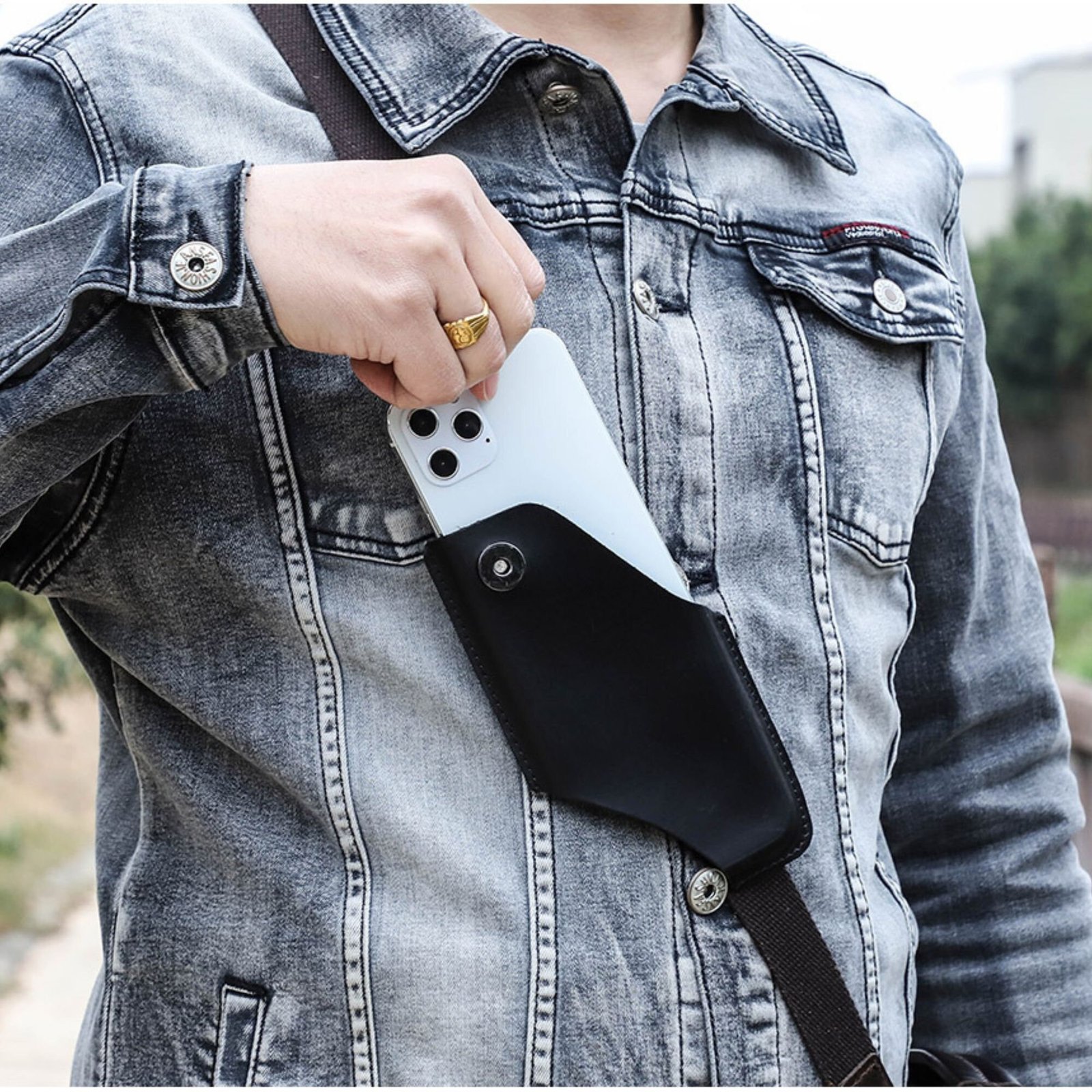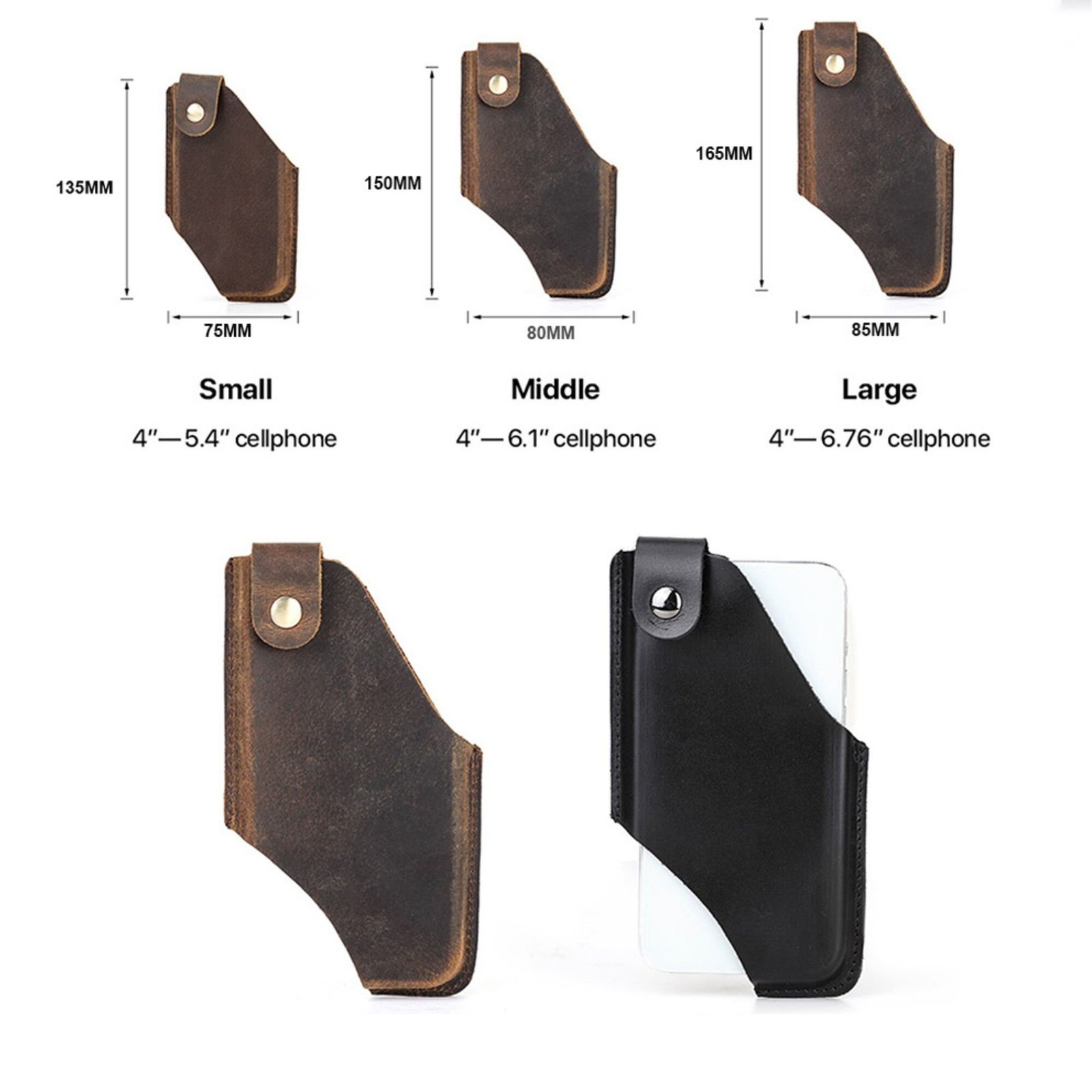 Leather Men Phone Waist Case Bag Magnetic Button Cellphone Belt Clip Holster for Phones 6.1 inch