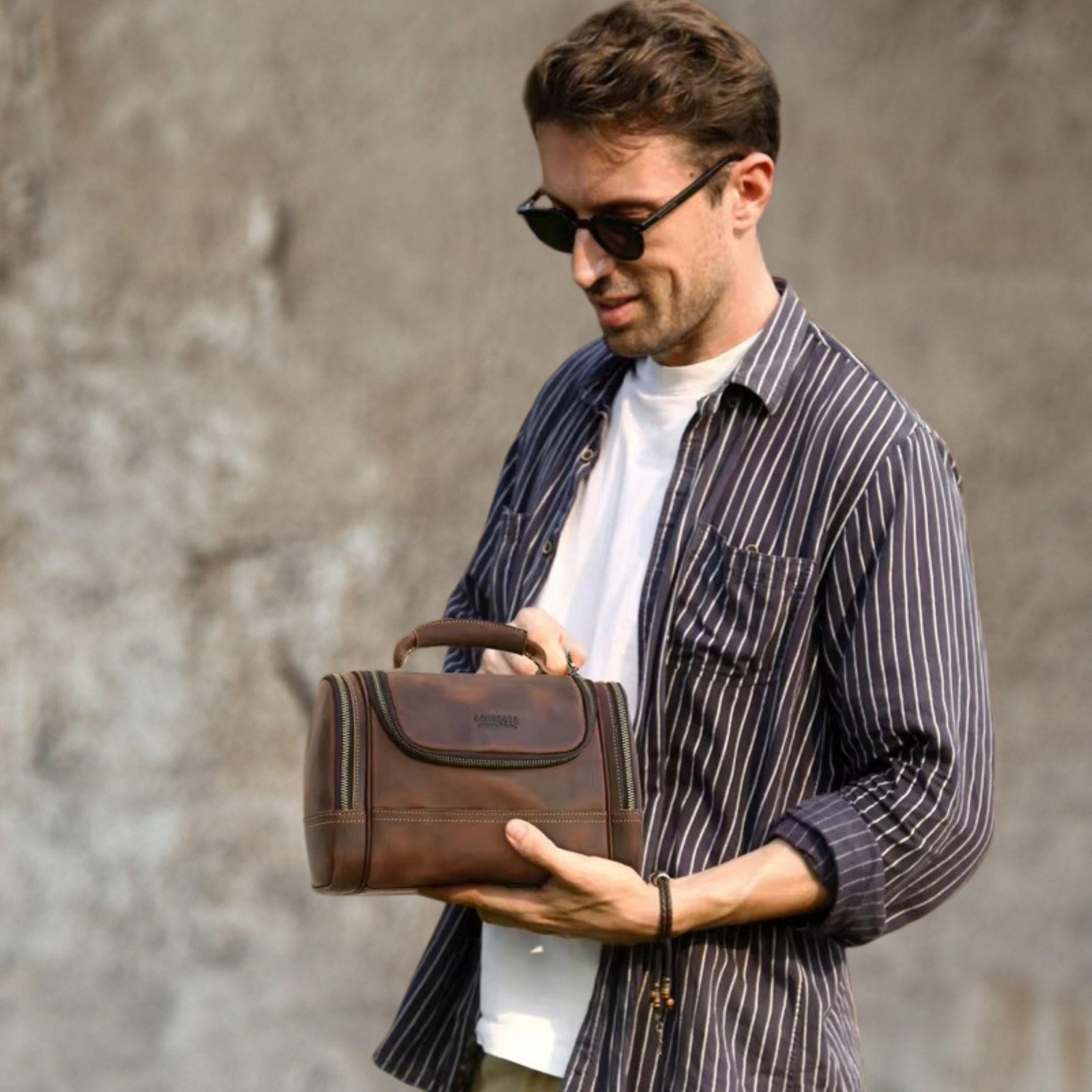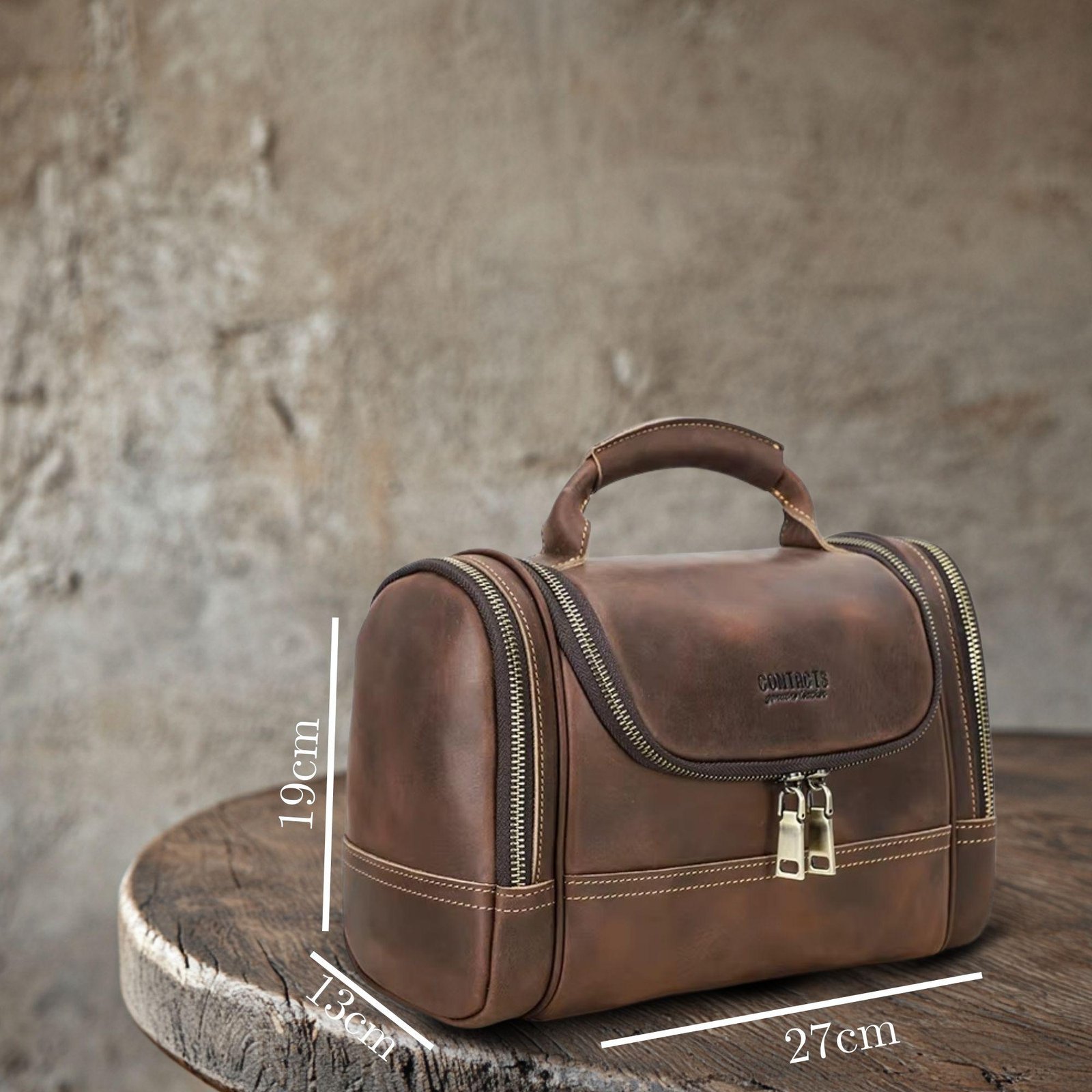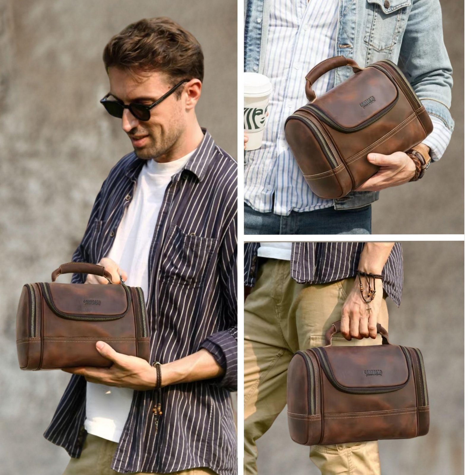 + Free ShippingCrafted from premium genuine leather, this retro-style toiletry bag is perfect for both men and women. Designed for travel and business trips, it offers large capacity storage for shaving kits, cosmetics, washing essentials, and daily accessories. The durable leather exterior and secure zipper closure ensure long-lasting use and protection. Stylish, spacious, and practical — an ideal organizer for travel, gym, or home use.