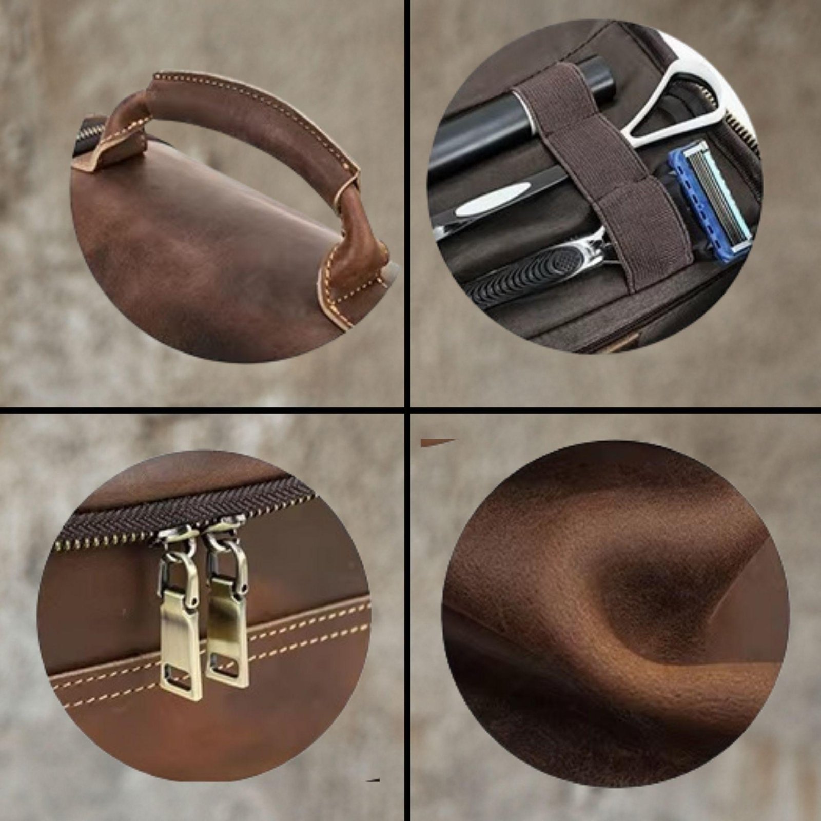 Men Genuine Leather Travel Business Toiletry Shaving Bag Women Retro Cosmetic Washing Shower Organizer Handbag Large Capacity