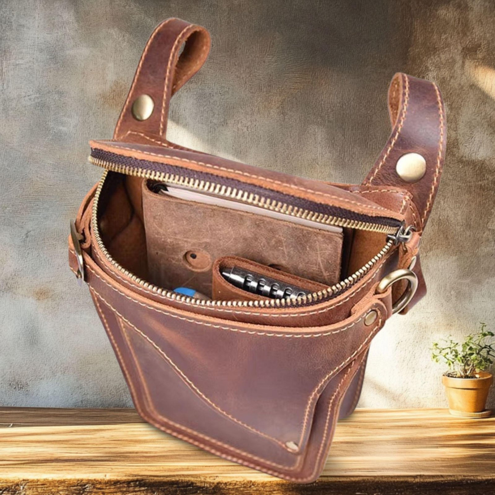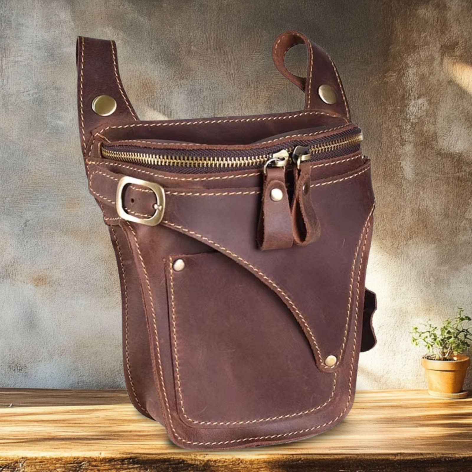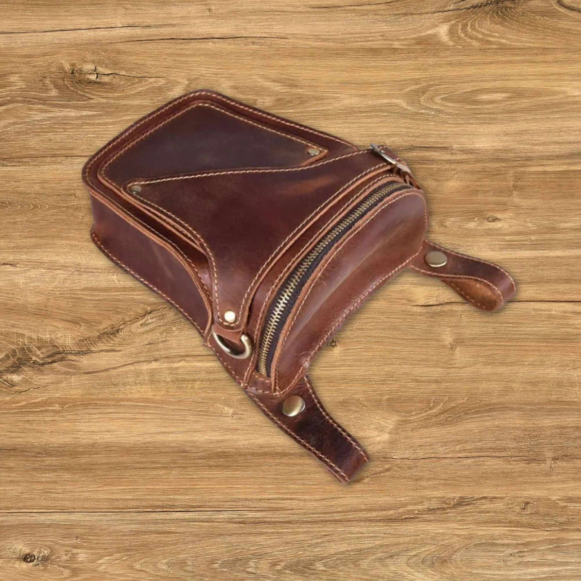 + Free ShippingRide in style with this premium genuine leather motorcycle waist bag, crafted from durable Crazy Horse leather for a rugged vintage look. Designed with a secure belt fit, this hip pack keeps your essentials close and easily accessible. Spacious enough for your phone, wallet, keys, and small accessories, it’s perfect for riding, travel, hiking, and daily use. Durable, practical, and stylish — the ideal leather fanny pack for modern men on the go.