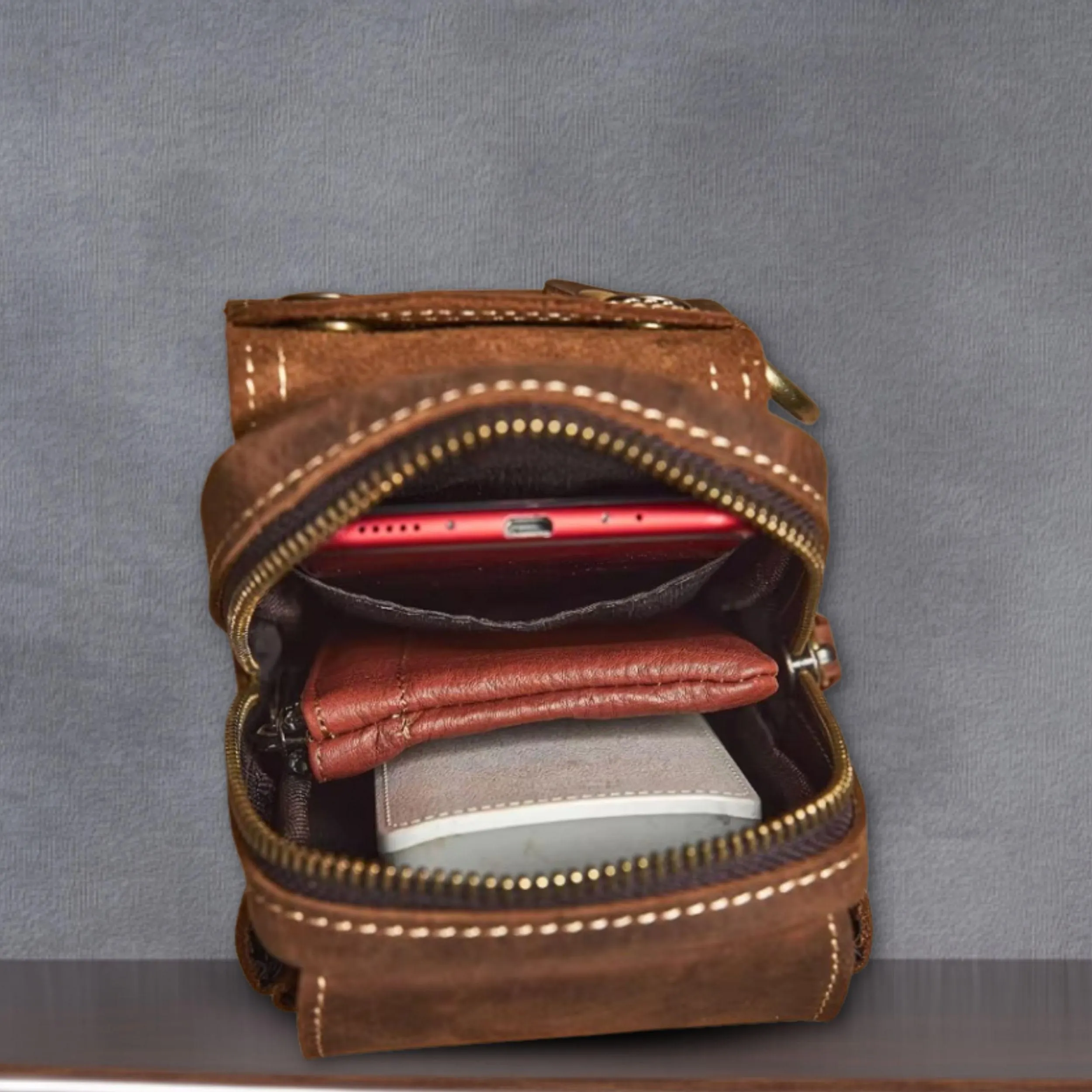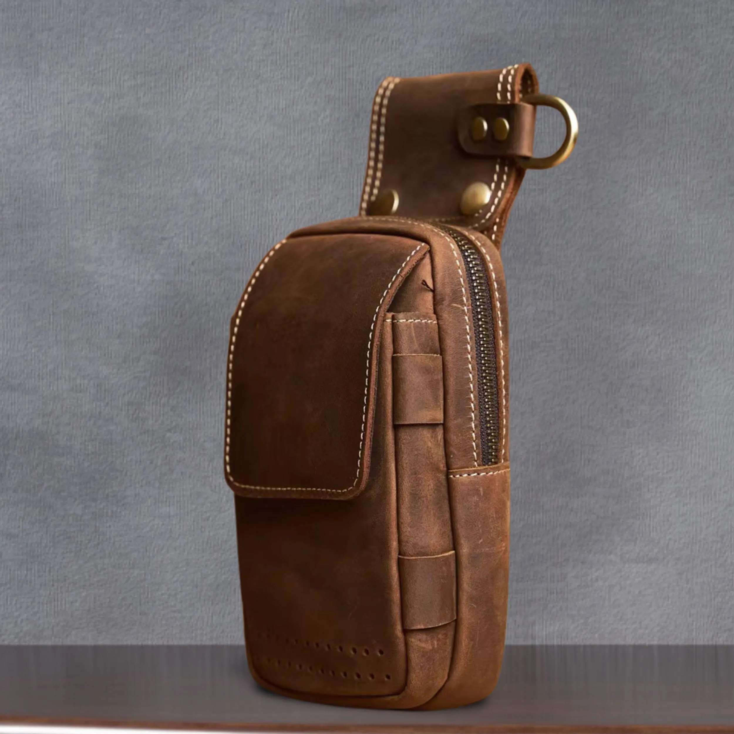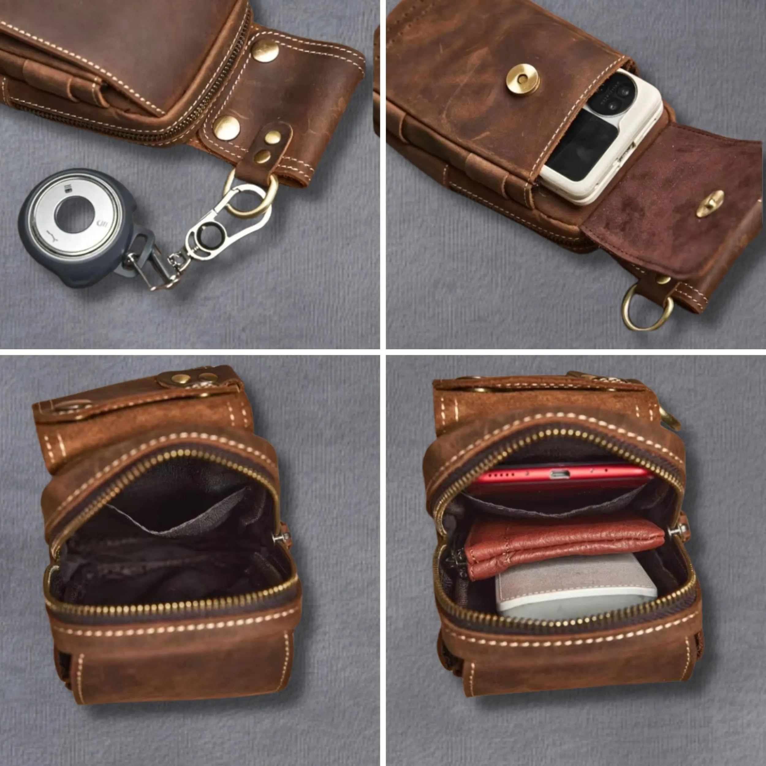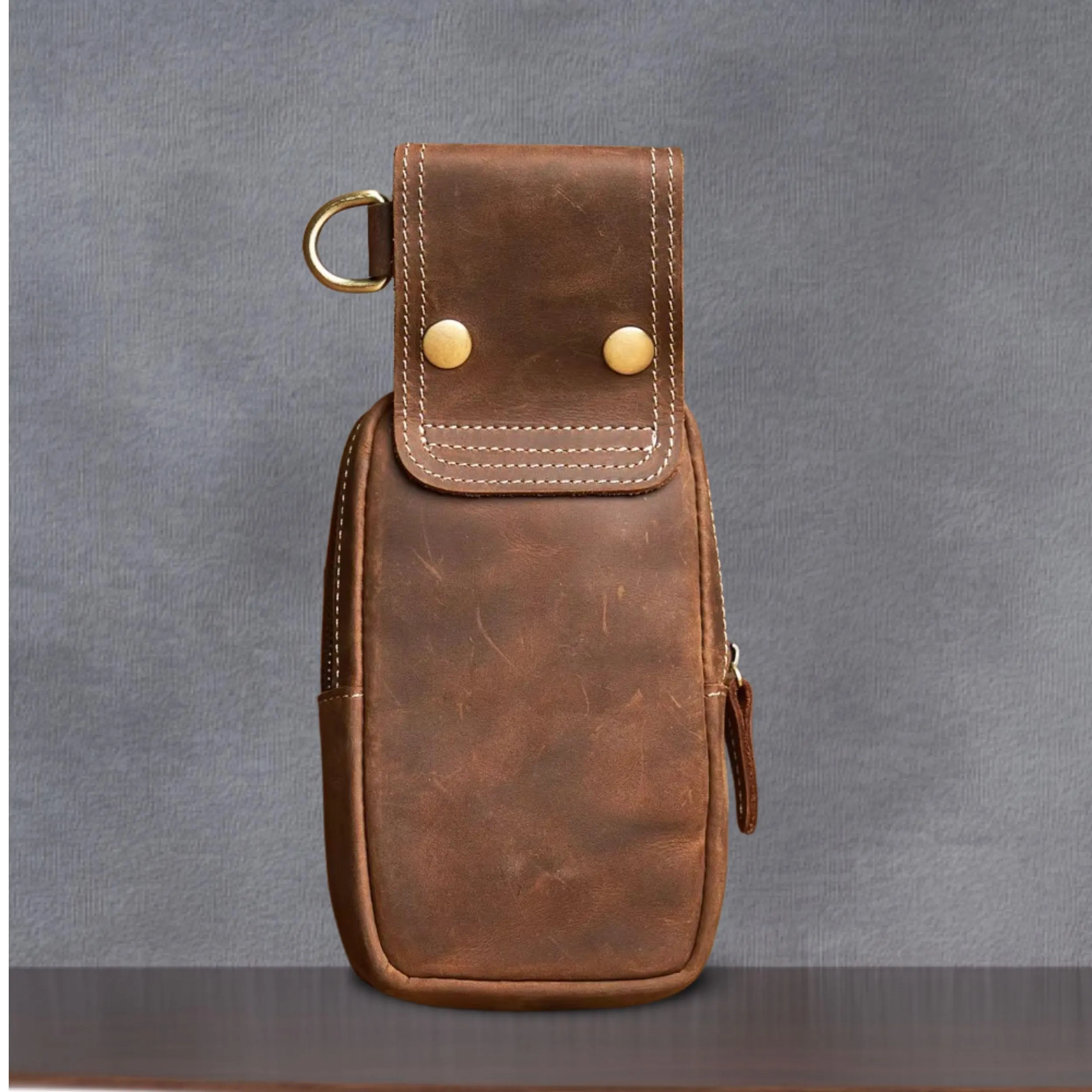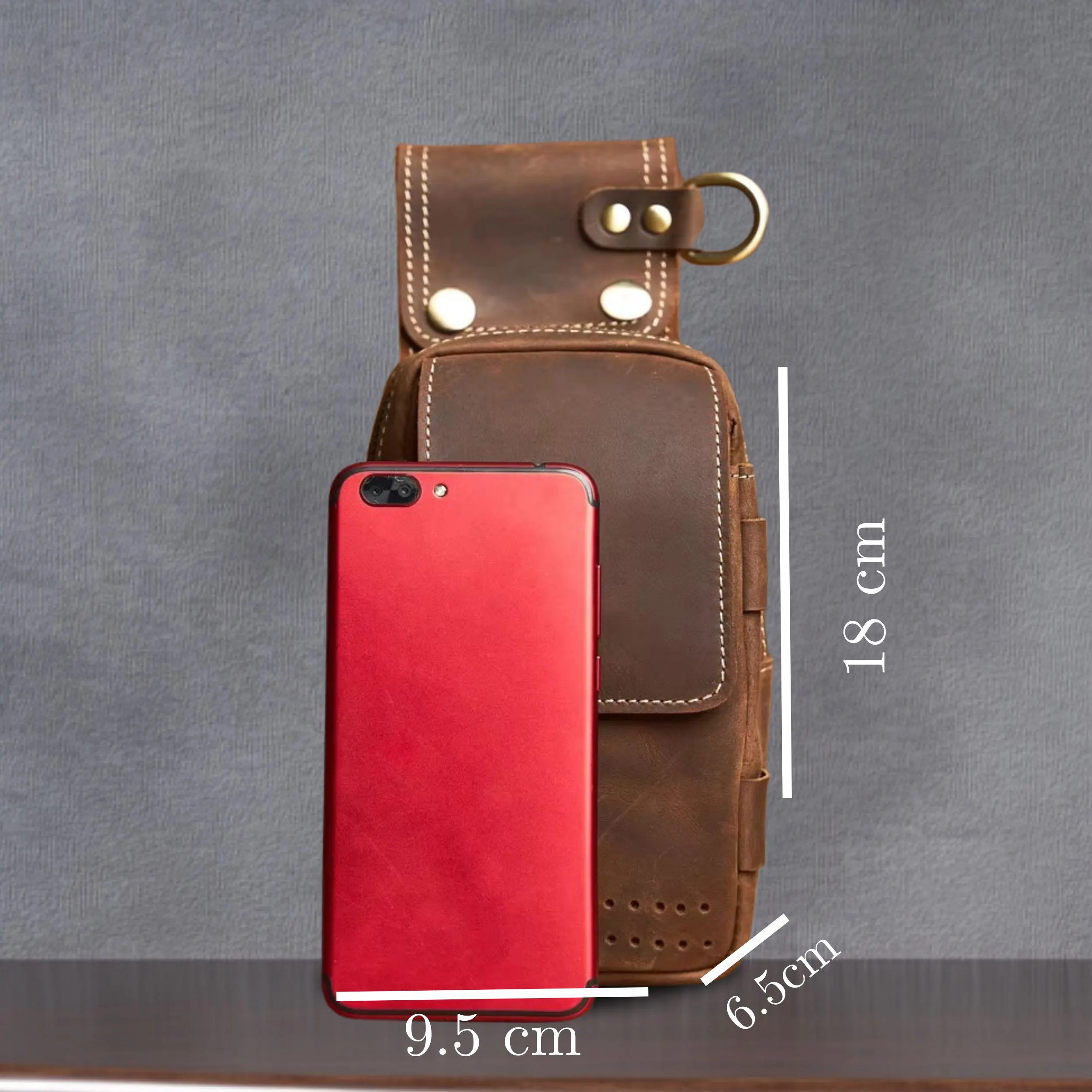 NUPUGOO Genuine Leather Waist Bag Men’s Vintage Cell Phone Bag Mini Bag Wear Leather Strap With Pen Holder