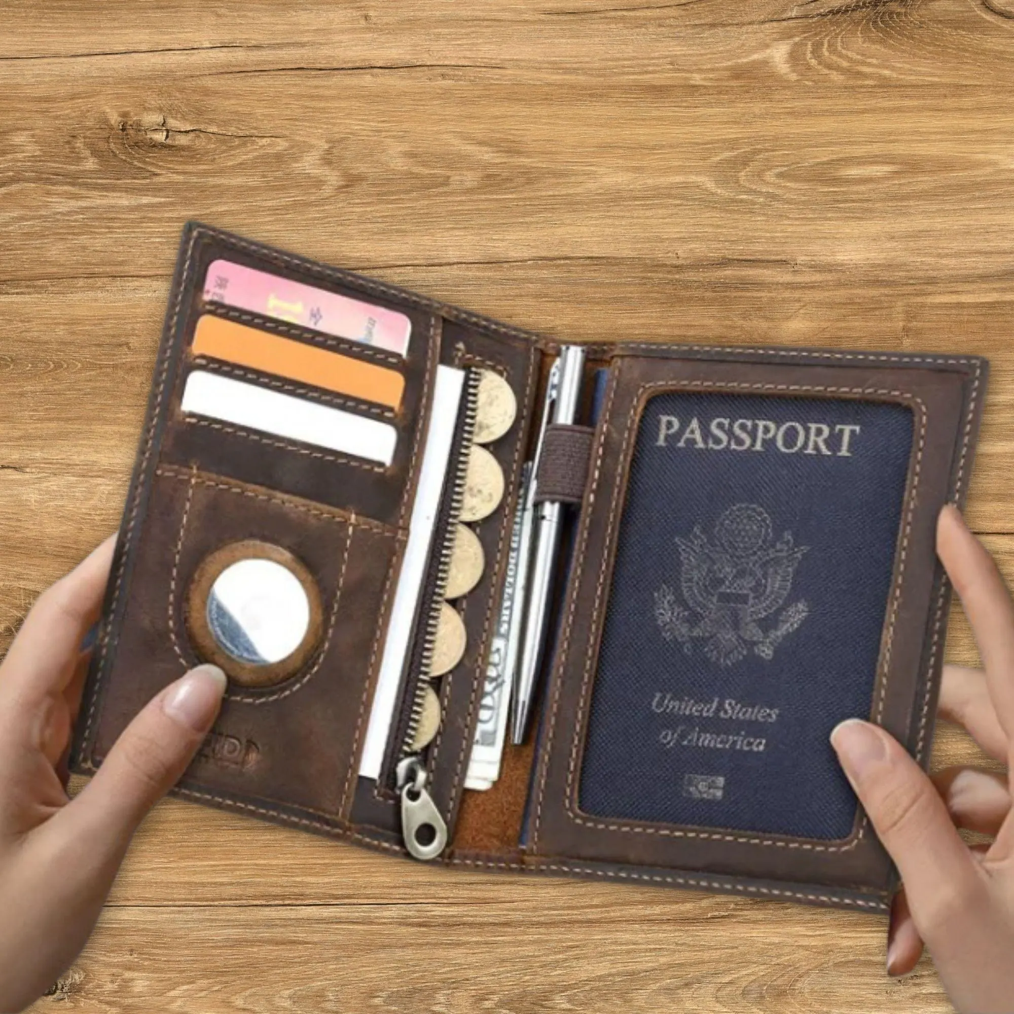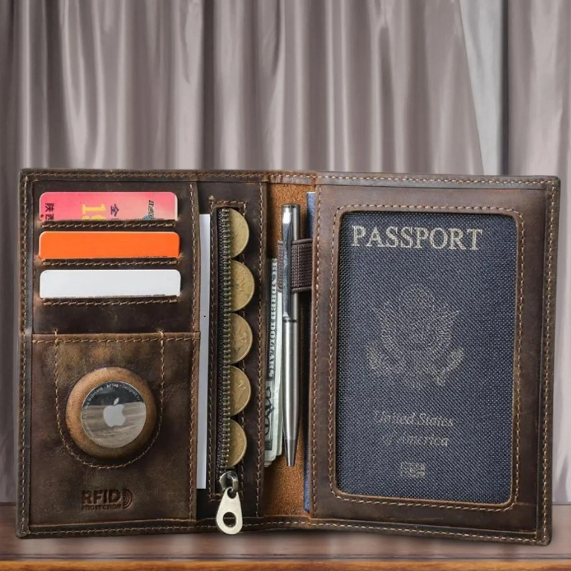 Crafted from premium genuine leather, this luxury travel wallet offers style, security, and convenience. Designed to hold your passport, cards, cash, and travel documents, it features RFID-blocking protection to safeguard your personal information. With its vintage look and anti-lost design, this practical card holder wallet is perfect for business trips, vacations, and everyday use. Durable, secure, and elegantly designed for modern men.